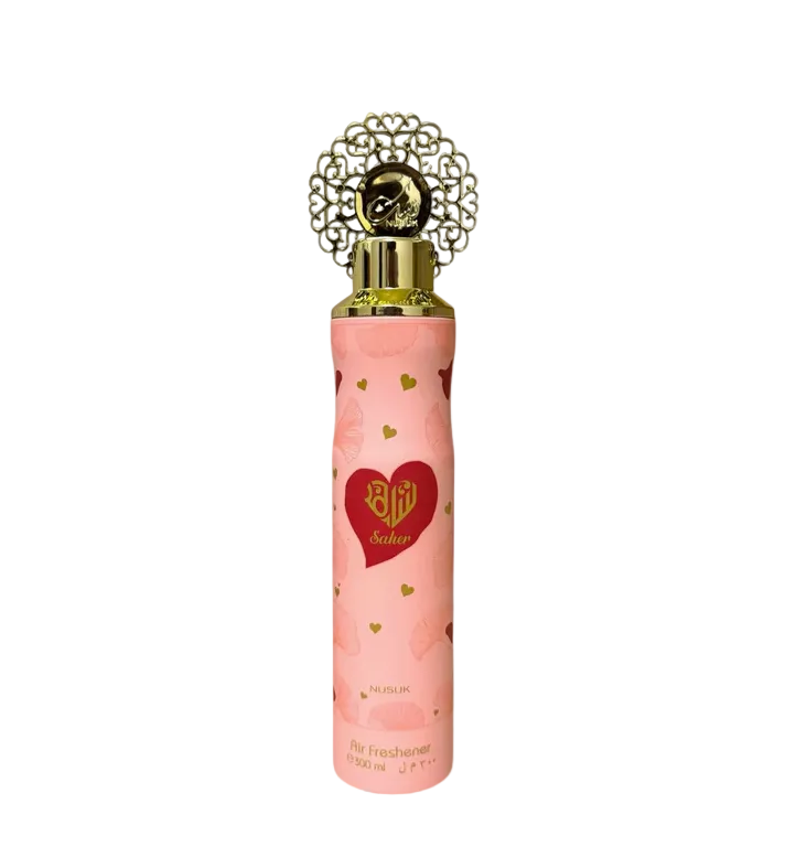 Infuse your surroundings with refined warmth and graceful charm using Nusuk Saher Air Freshener. Inspired by the beloved Saher fragrance, this ambient spray brings a soft floral-oriental character into your home, creating a welcoming and sophisticated atmosphere with every use.